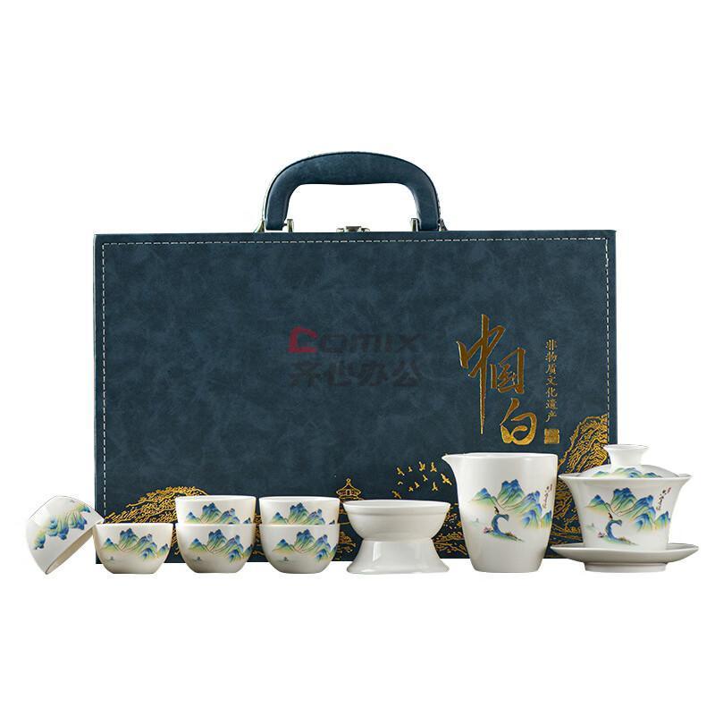 - 商品名称:茶循 千里江山 十件套蓝色礼盒装 羊脂玉白瓷 茶具套装(单位:套)