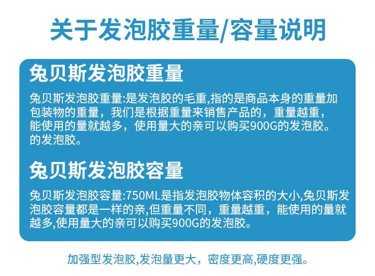 - 商品名称:兔贝斯 750ml 发泡胶堵洞神器 单位:瓶