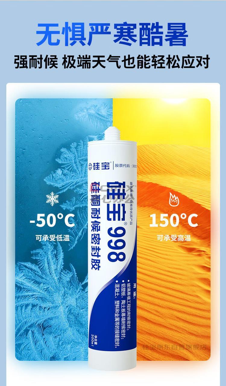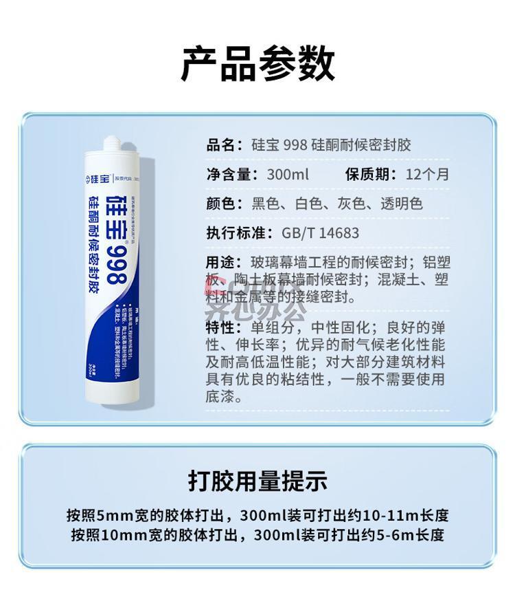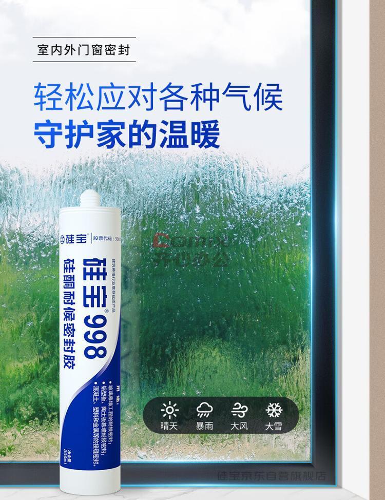 - 商品名称:硅宝 998 玻璃胶 净含量300ml 白色 单位:瓶