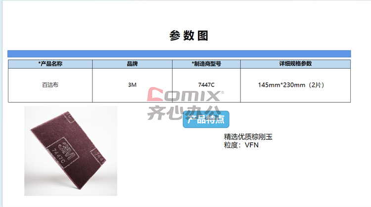 - 商品名称:3M 7447C 145mm*230mm(2片) 百洁布 XQ 单位:袋