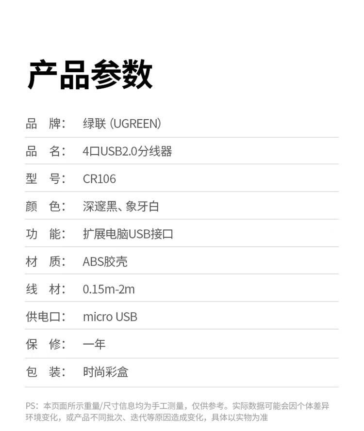 - 商品名称:绿联 集线器 20270 4口 USB 2.0 1m 白色 单位:个