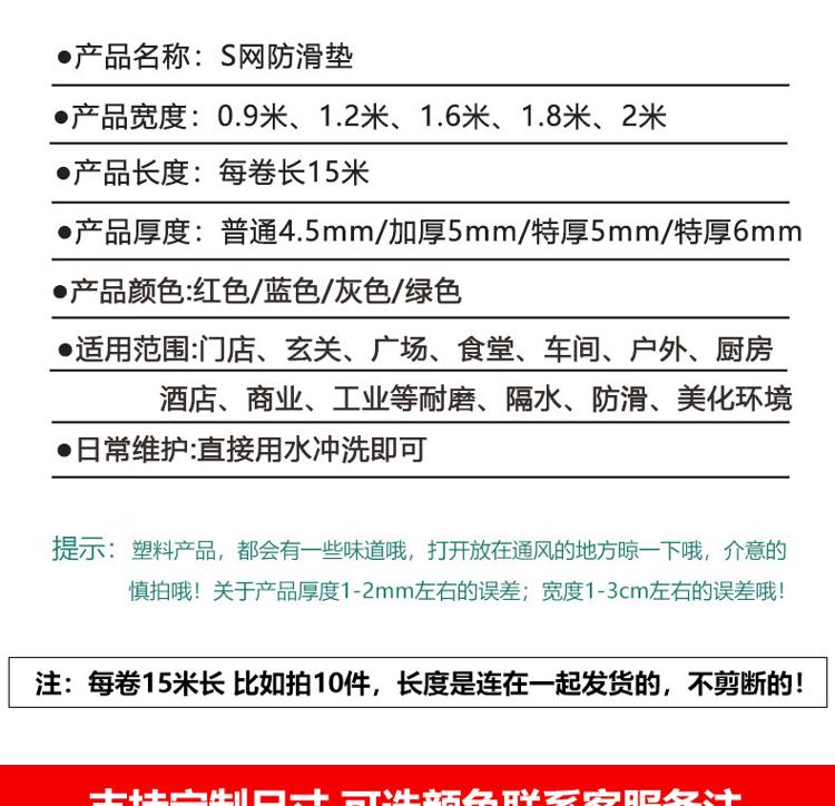 - 商品名称:迪茵 4.5mm厚红1.8米宽1米长 PVC防滑垫镂空地垫 (单位:张)