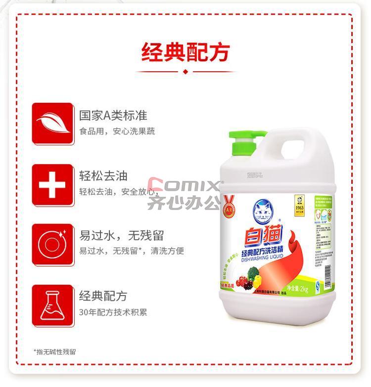 - 商品名称:白猫 1×8 经典配方洗洁精 2kg 单位:瓶