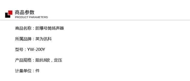 - 商品名称:英为讯科 YW-200Y 防爆号筒扬声器 阻抗8欧,定压 单位:件
