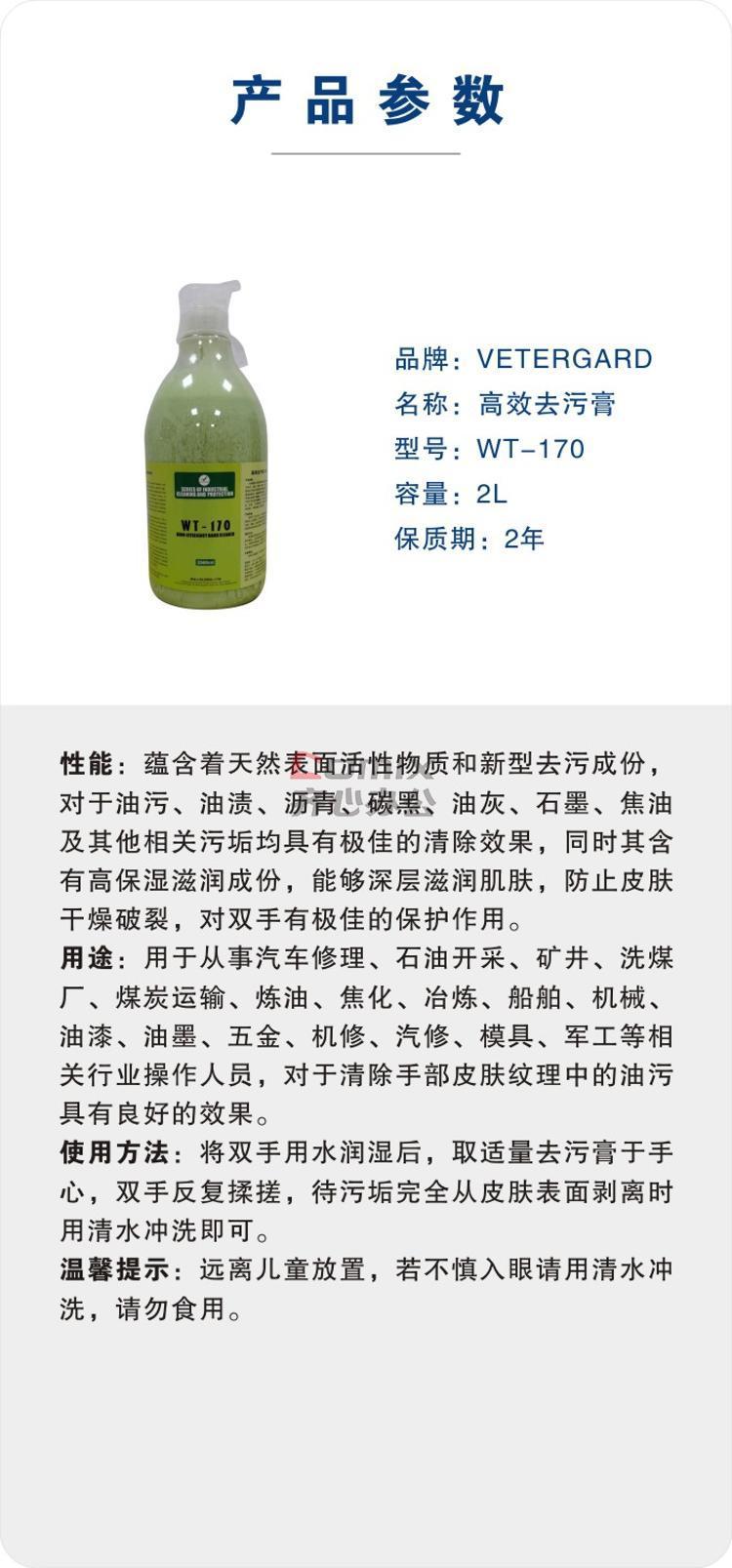 - 商品名称:VETERGARD 高效去污膏 WT-170 2L/支 单位:支