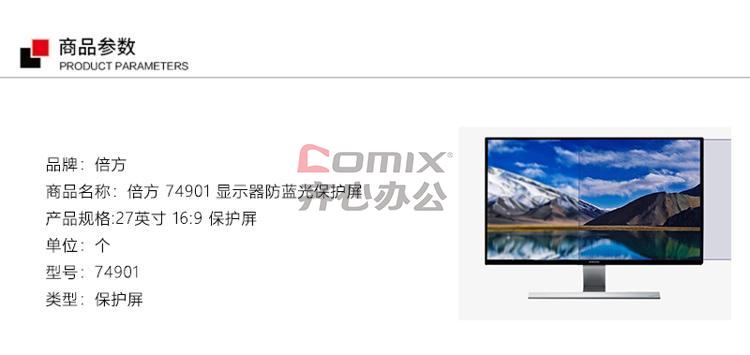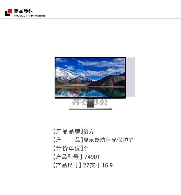 - 商品名称:倍方 74901 显示器防蓝光保护屏 27英寸 16:9 防护屏 27英寸 (单位:个) 黑色