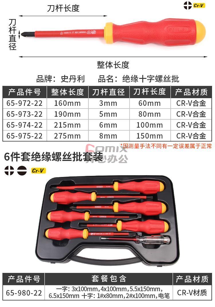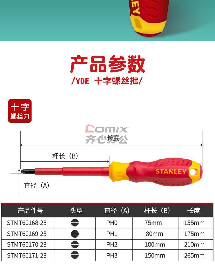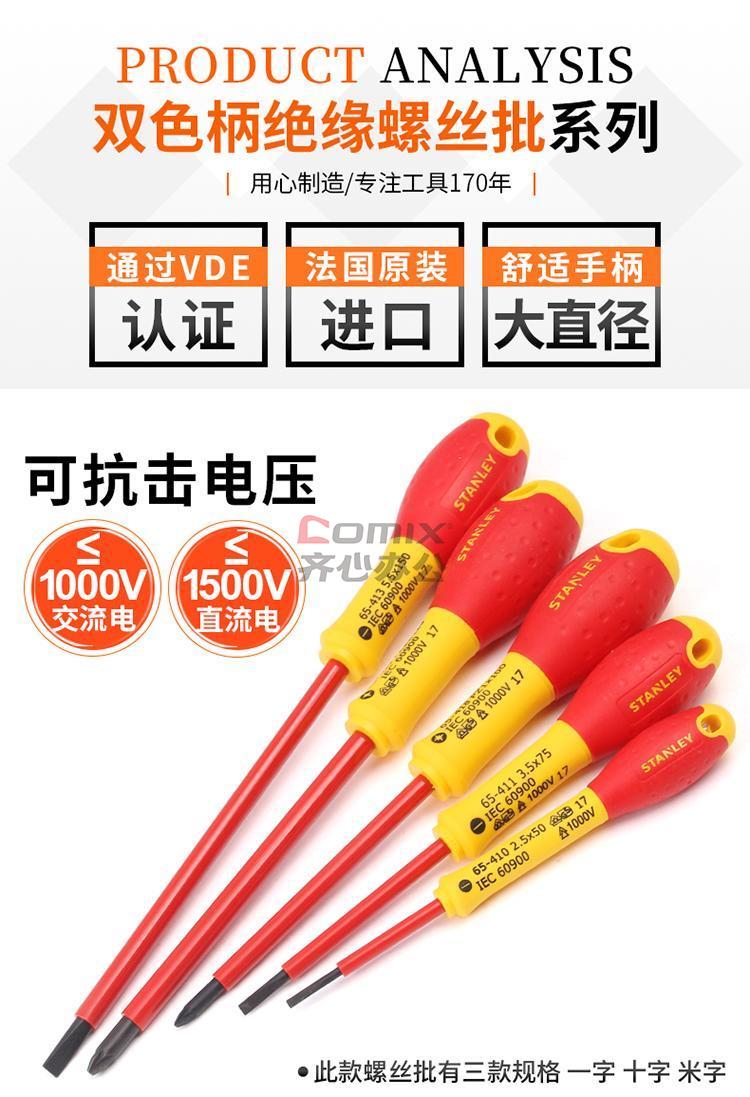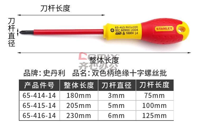- 商品名称:史丹利/STANLEY 绝缘螺丝批,双色柄十字型,65-415-14 #1 × 100mm 售卖规格:1个