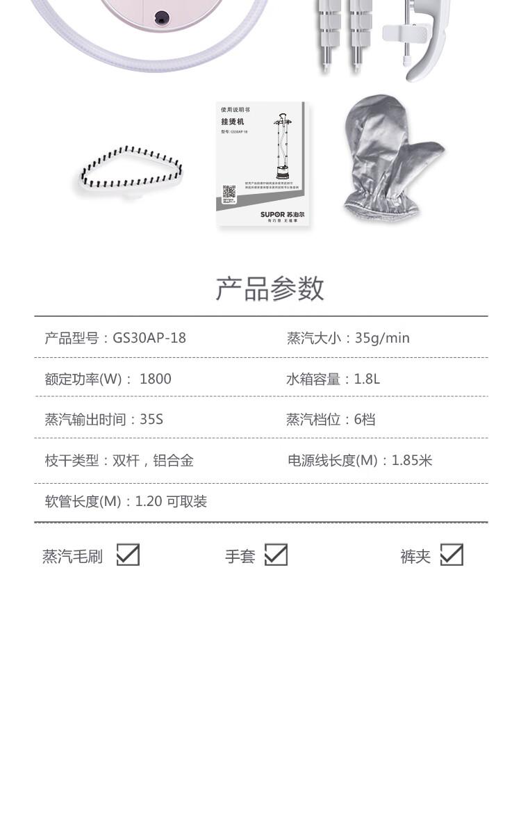 - 商品名称:苏泊尔 蒸汽挂烫机 GS30AP-18 1800W 1.8kW/220V 5档控温 五档以上 家用 220V 1台/台 台