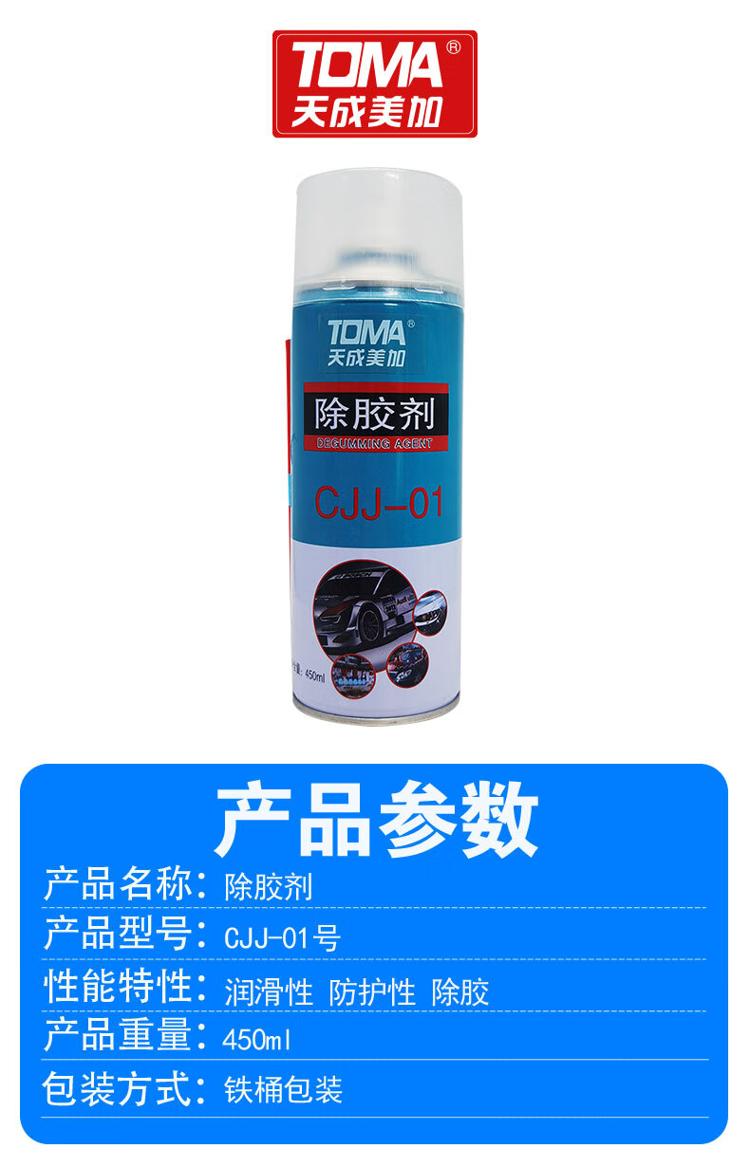 - 商品名称:天成美加(TOMA) 除胶剂 除胶剂 450ml 450 金属表面;玻璃表面;塑料表面;陶瓷和大理石表面 溶剂型 除胶剂 有机溶剂型除胶剂(待确认) 450ml 去除胶质残留(待确认) 450mL/瓶 瓶