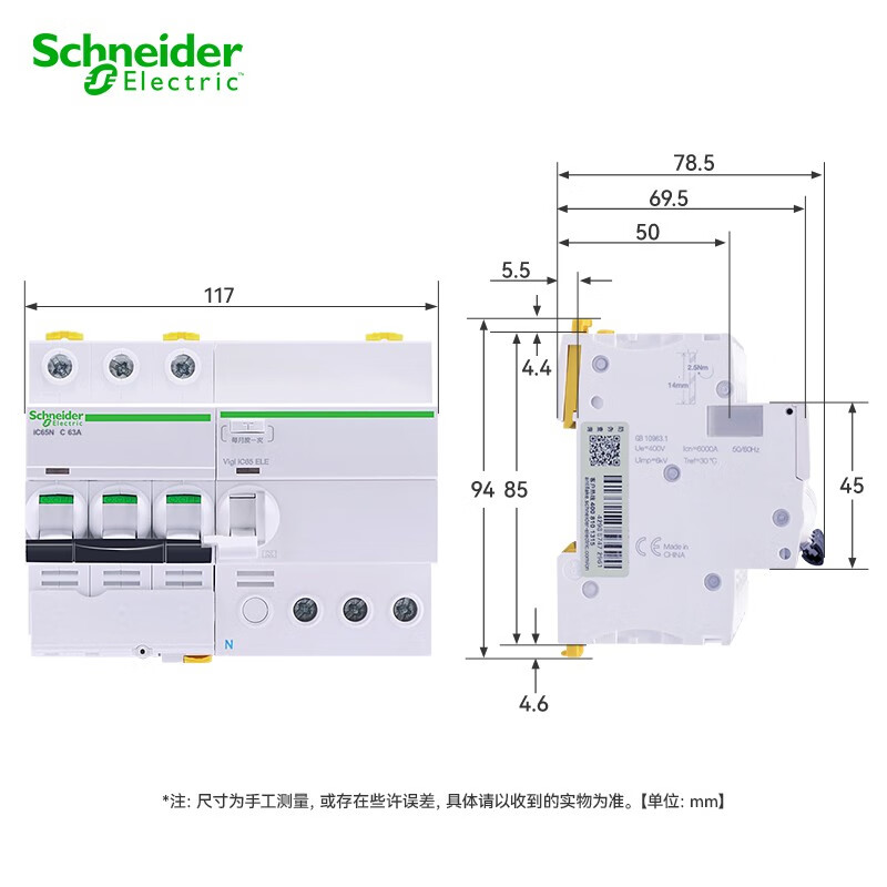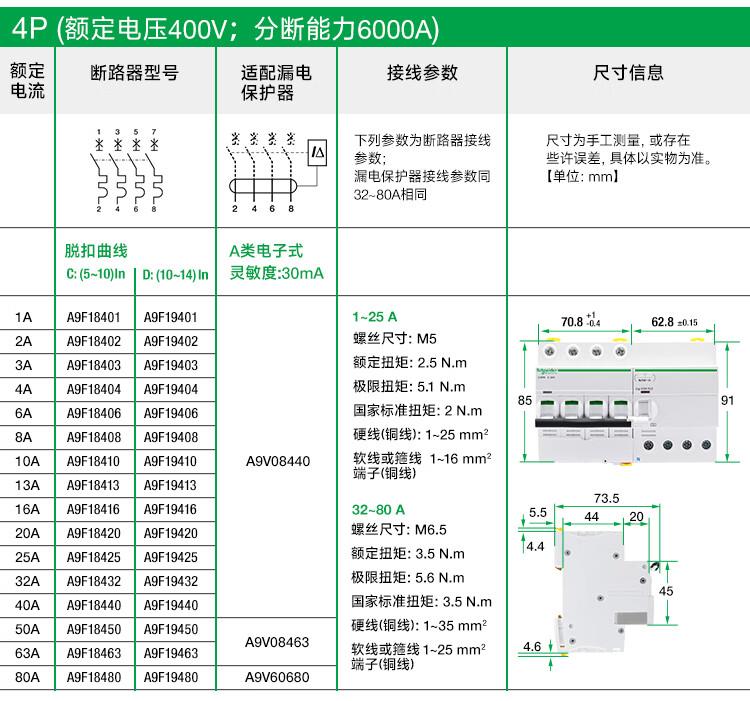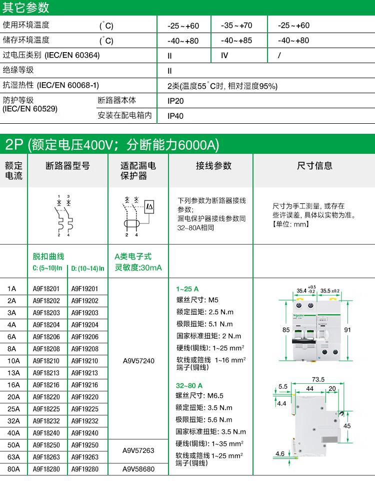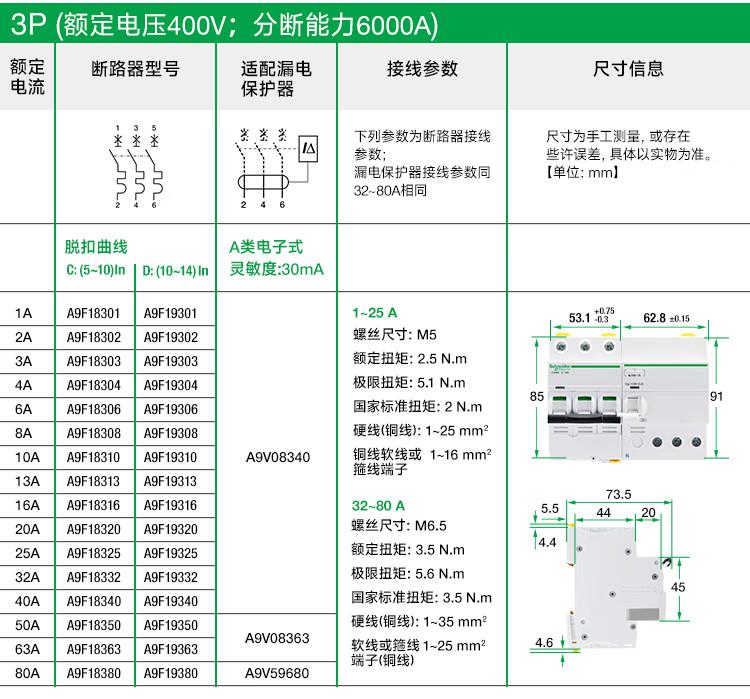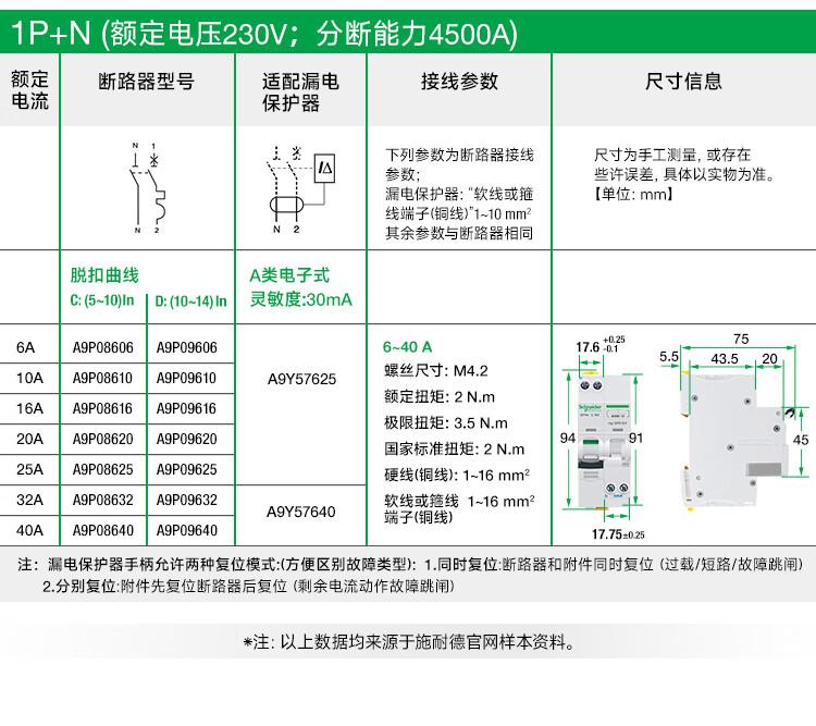 - 商品名称:施耐德电气 6kA 30mA 漏保空气开关 E92D20+D9232/030 单位:个