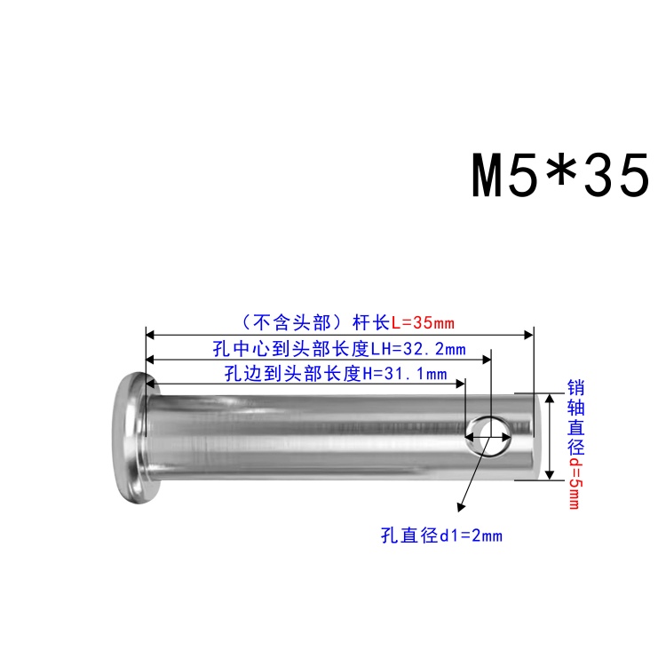 - 商品名称:杉外山 2613 304不锈钢销轴 M5*35【5支】 银色 单位:袋