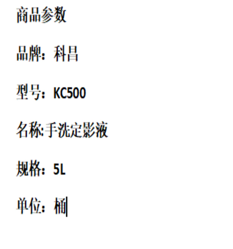 - 商品名称:科昌 KC500 手洗 定影液 5L 单位:桶