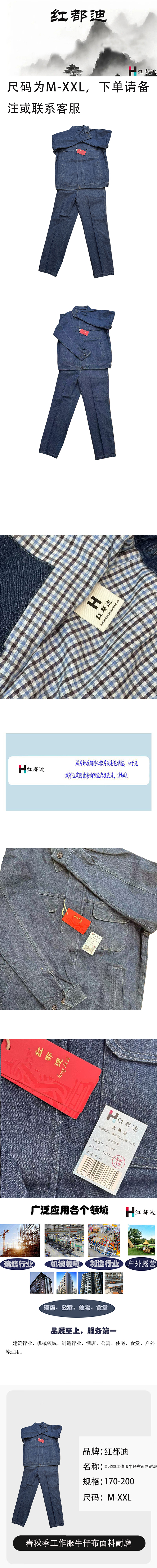 - 商品名称:红都迪 春秋季工作服牛仔布面料耐磨 170-200 套