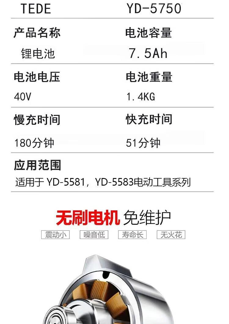 - 商品名称:TEDE YD-5750 40V锂电池 单位:个