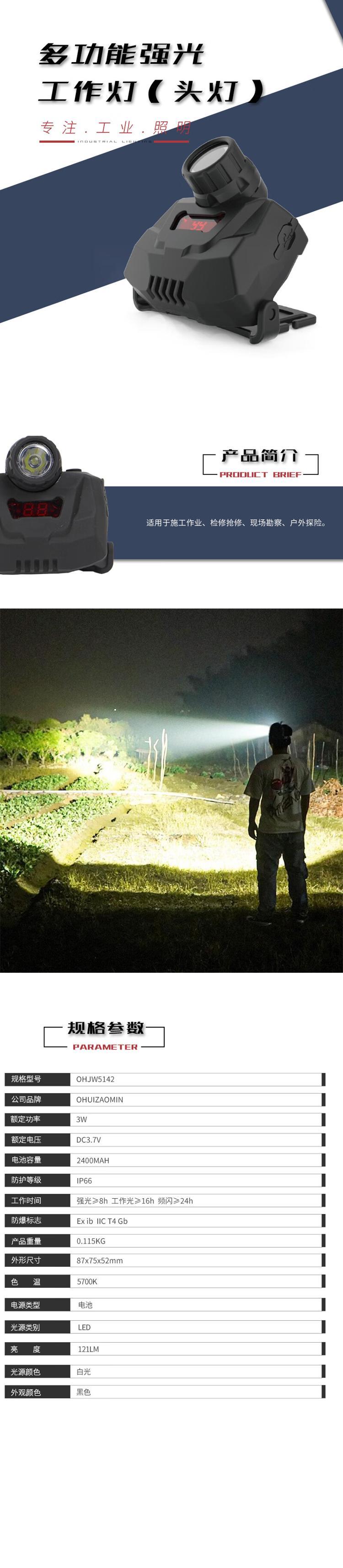 - 商品名称:欧辉照明 (OHUIZAOMIN) OHJW5142 防爆头灯 多功能强光 单位:套