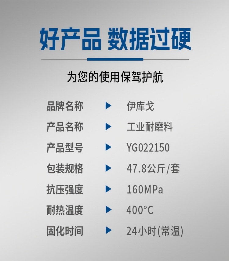 - 商品名称:伊库戈 工业耐磨料 YG022150 47.8Kg/套 1套装 单位:套