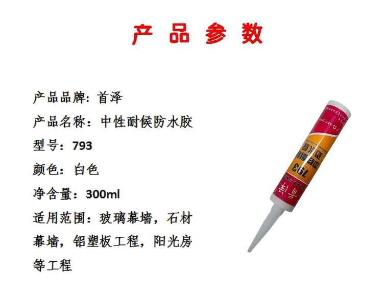 - 商品名称:首泽 793 中性耐候防水胶 300ml 白色 (单位:支)