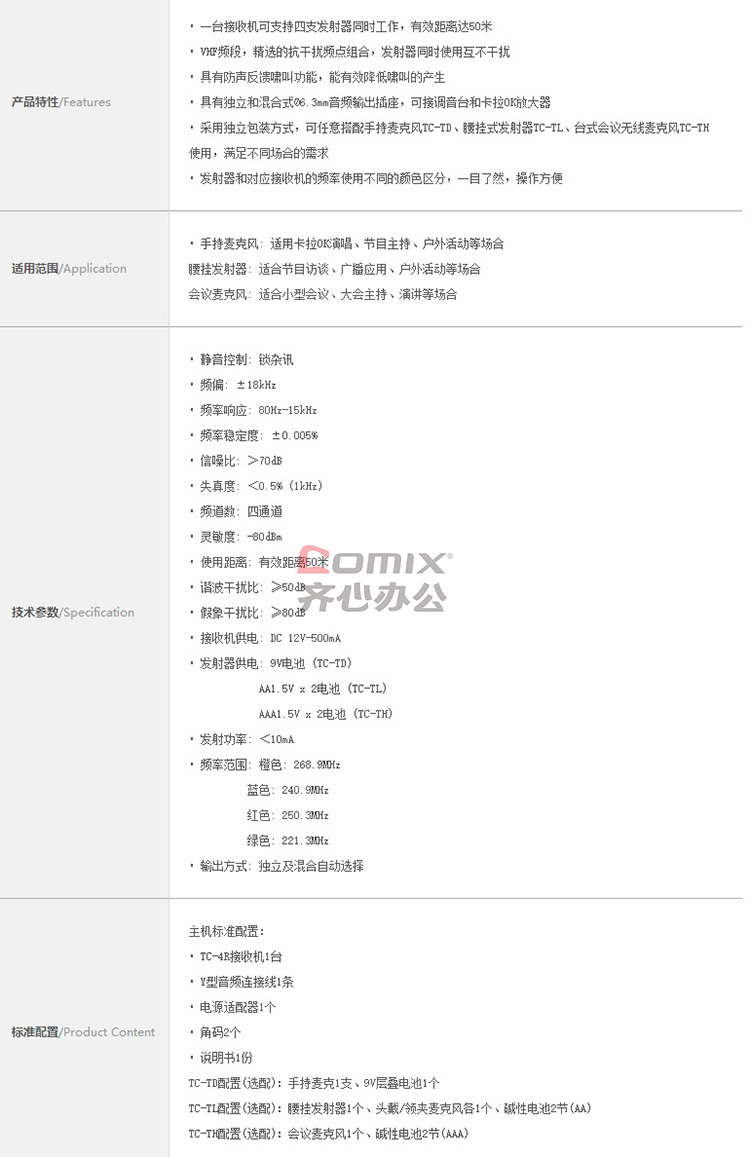 - 商品名称:得胜 TC-4R V段一拖四无线手持/头戴/鹅颈麦克风 (单位:台)
