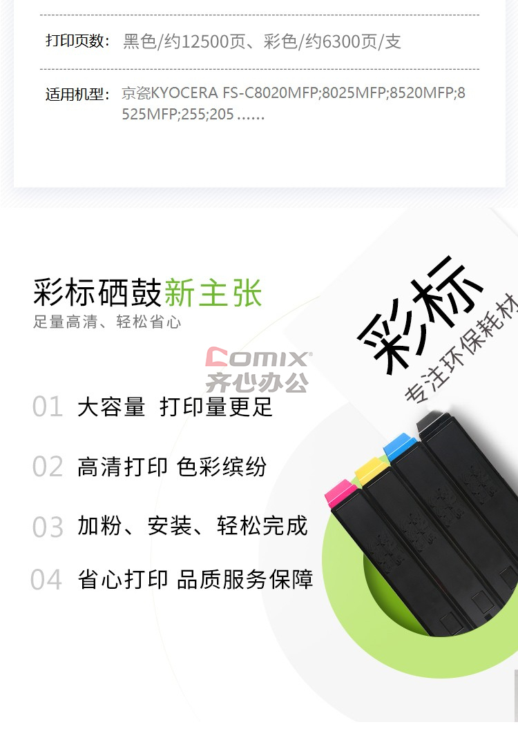 - 商品名称:彩标 TK-898K TK-898系列硒鼓粉盒(适用于京瓷C8020/8025 8520/8525) 黑色(单位:个)